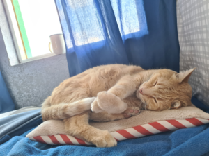 Since being rescued in 2019, Zeus has clawed his way to the top of GuateImmersion, mostly by sitting on the paperwork until we gave him the job. He runs a tight ship as CEO (Cat Executive Officer), demanding punctual meal service, premium nap locations, and unconditional admiration. His core skills include sleeping, eating, asking for more food, and sleeping again… usually in the exact spot we need to work.